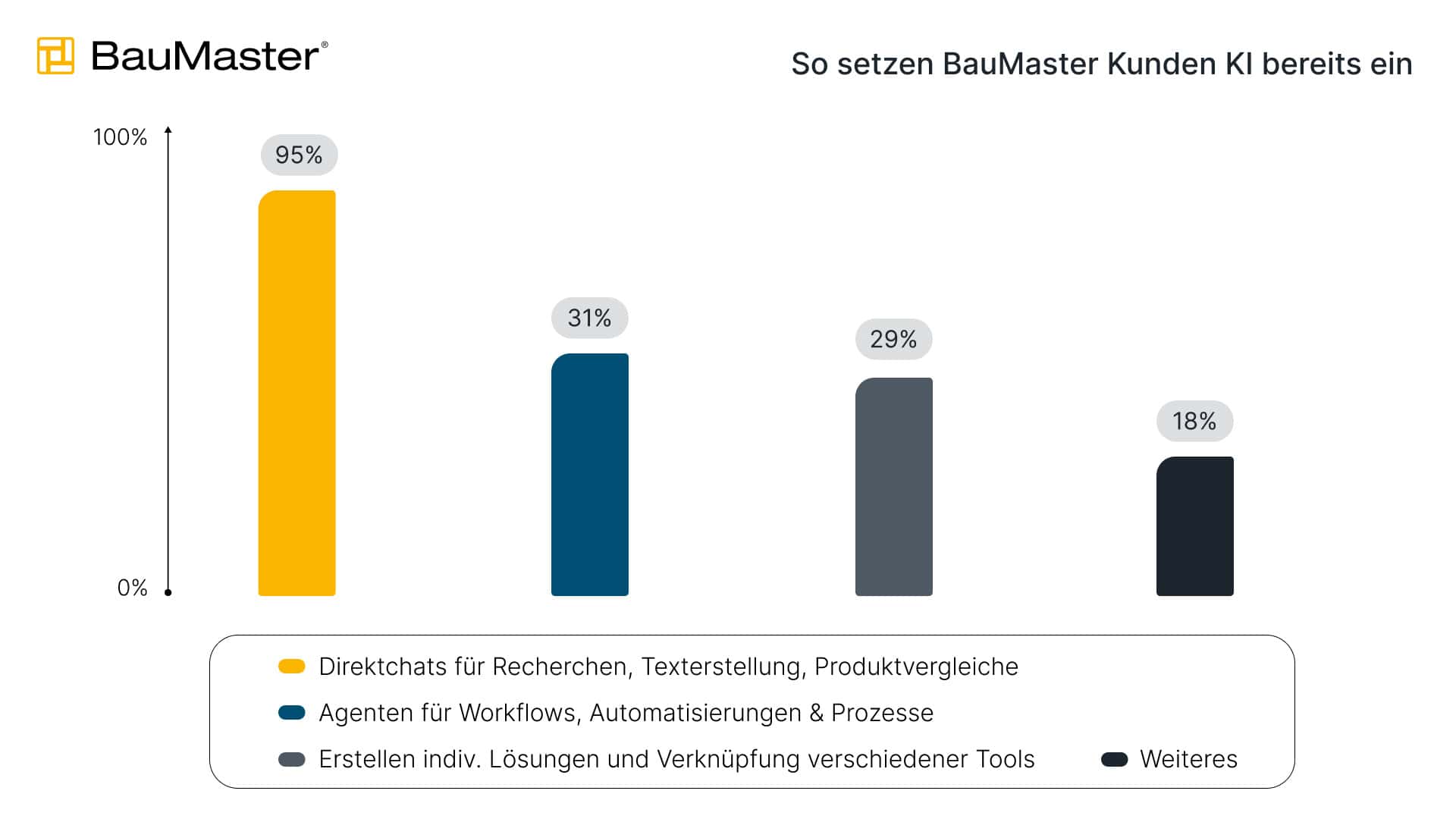 Infografik: So setzen BauMaster-Kunden KI bereits ein (Datenquelle: Umfrage BauMaster)